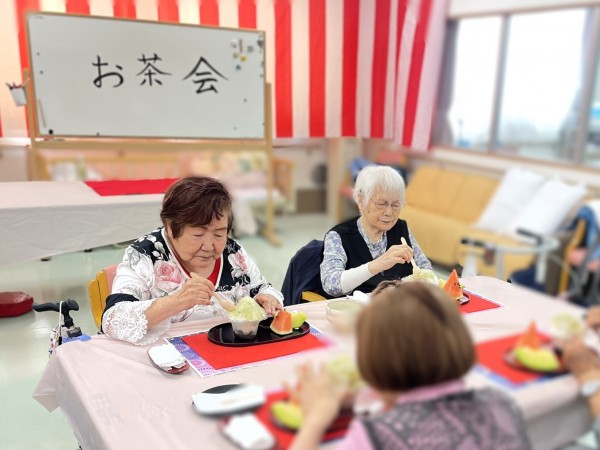 お次は夏のお茶会限定!かき氷にフルーツを添えてご提供♪