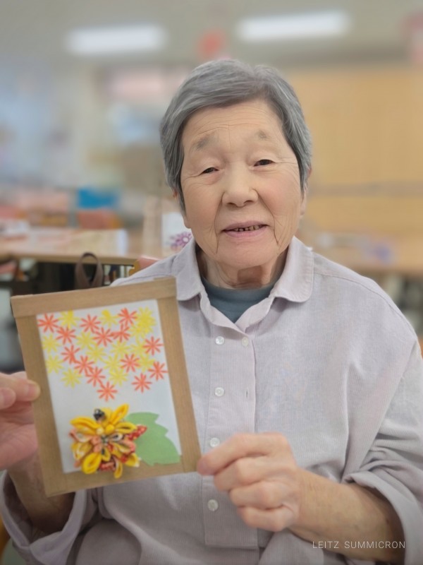 切り抜いた黄色と橙色2色の花をお好みのバランスでふんだんに貼り付けていただきました。