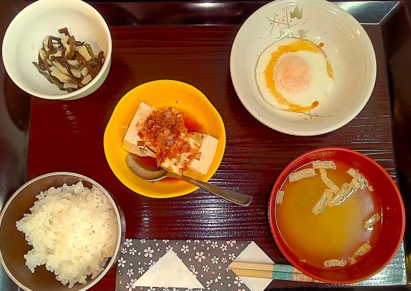 温かいお豆腐は消化にもやさしく 朝の体にホッとする一品です(*´▽`*)