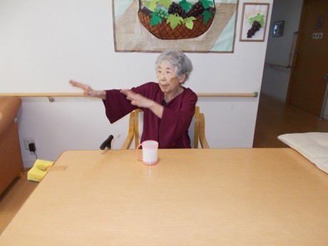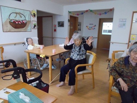 全員が参加されるわけではありませんが、車いす????の生活のご利用者様であっても、上半身を中心に