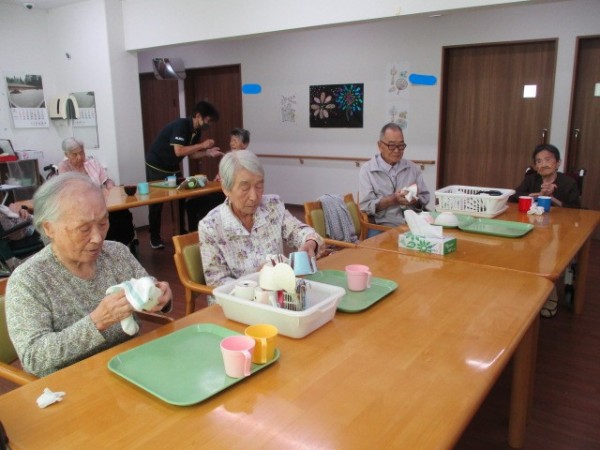 お茶碗拭きをして下さっているご様子です( ^ω^)・・・ みなさんで微笑ましく拭いて下さっています(^0_0^)
