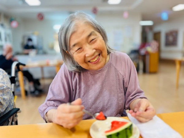 先日ご家族様から大きなスイカの差し入れがありました!