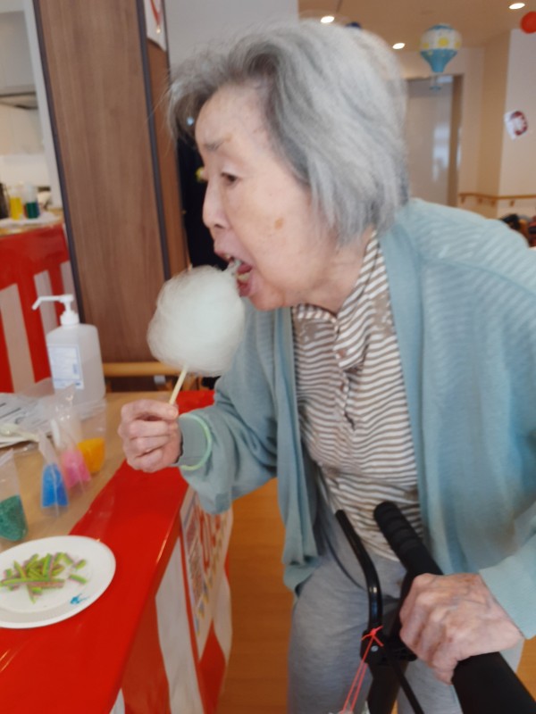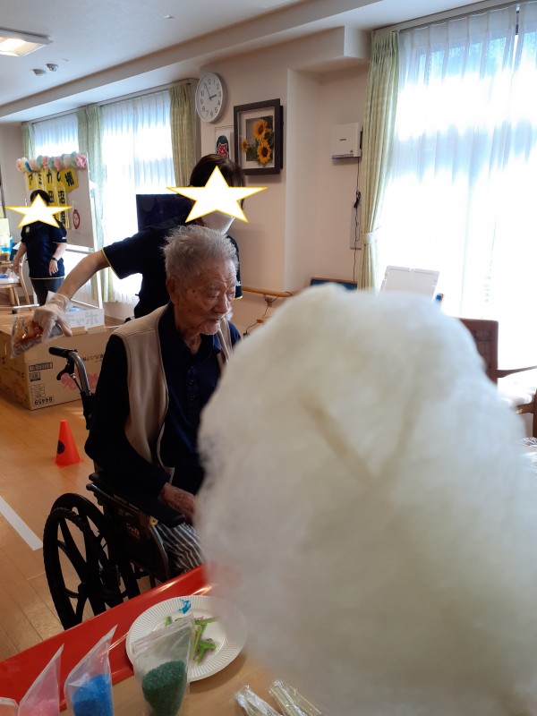こんにちは(❁´◡`❁)。介護付き有料老人ホームアミカの郷津田沼スッタフブログです! いつもご覧いただきありがとうございます。8月17日に行われた納涼際の綿あめ編です。皆さん甘いものが大好きで、ペロリと食べていました。