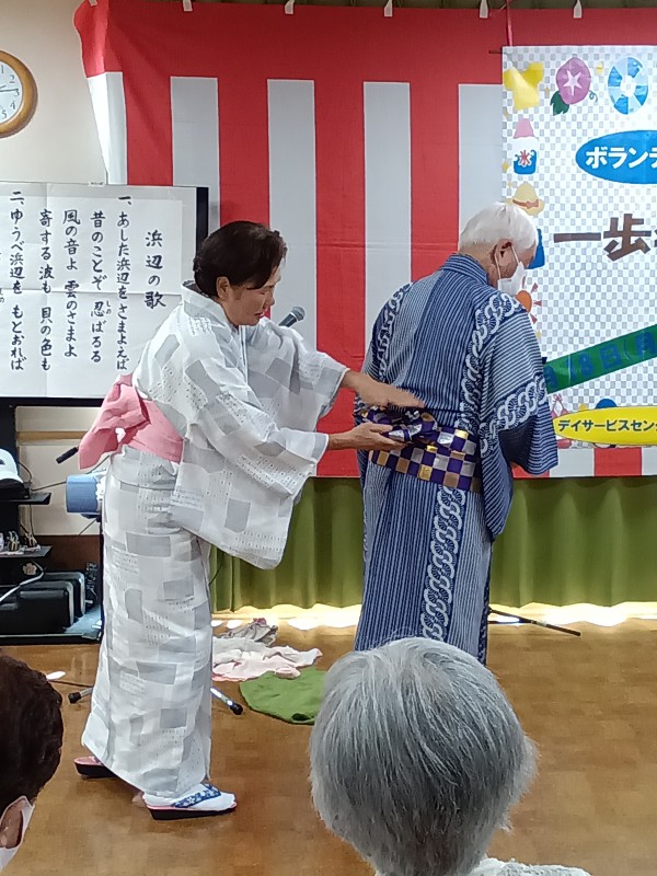 今回はリーダーが、ご利用者様に浴衣を着せて下さいました\(◎o◎)/!