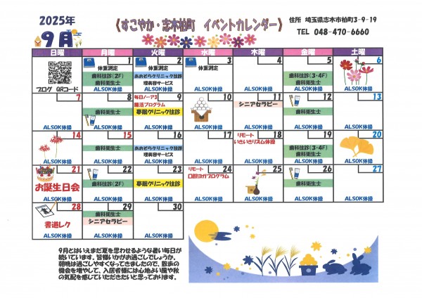 9月のイベントカレンダーを作成しました。