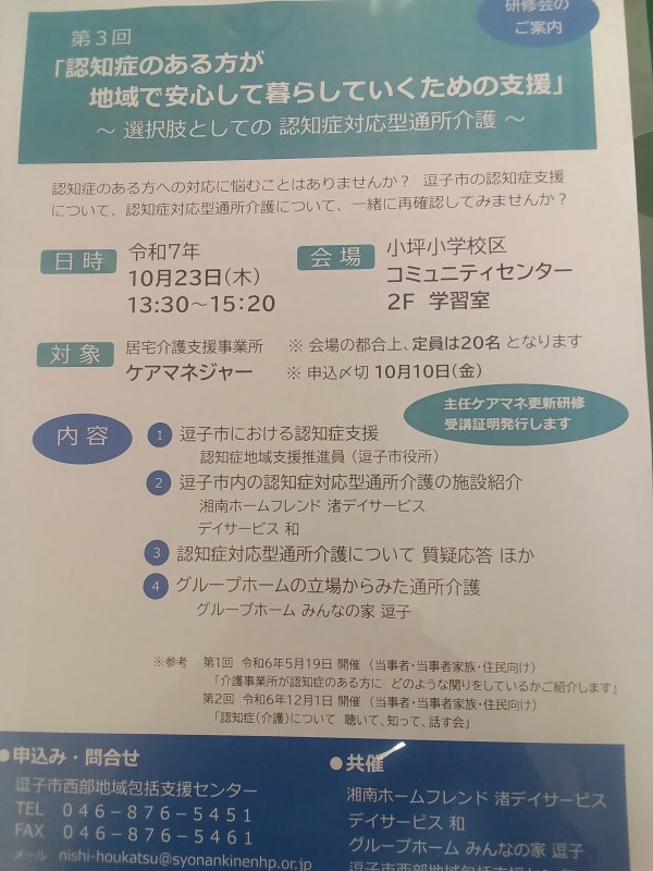 10月に第三回「認知症のある方が 地域で安心して
