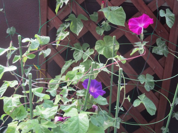 1ヶ月ほど前「朝顔成長記録」と題して、2Fフロアのベランダに植えた朝顔の様子をお伝えしました。あの時はもう少しで花が咲きそうという状態でしたが、あれからどれくらい成長したのでしょうか?