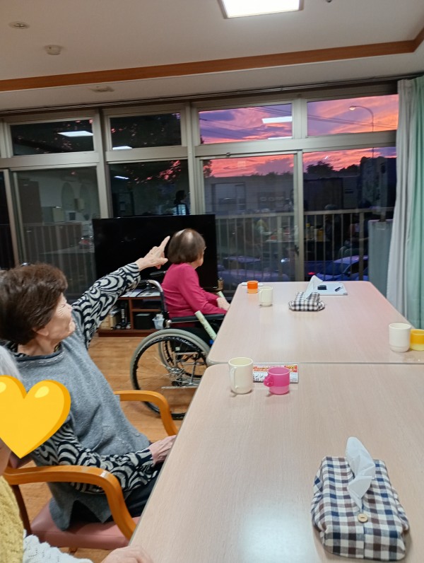 今日は夕焼けがと~~~ってもキレイだったので皆さんと一緒に食堂から観賞していました。