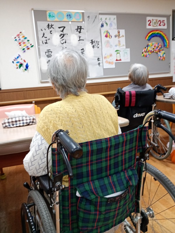 皆さんがレクで工作したものや書道などが飾られている展示板を眺めながらおしゃべりしたりと寝る前の幸せな時間です♪♪♪