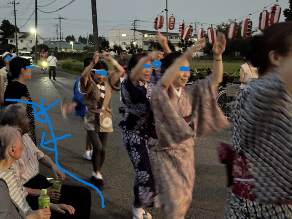 皆さんの熱気と迫力に圧倒されてしまい、只々踊りに魅入る他ない、やなか代表の二人。お土産にお茶を頂き帰宅。来年は皆さんが腰を抜かすような踊りで、現場をジャックしてくれるのを期待していますよ!