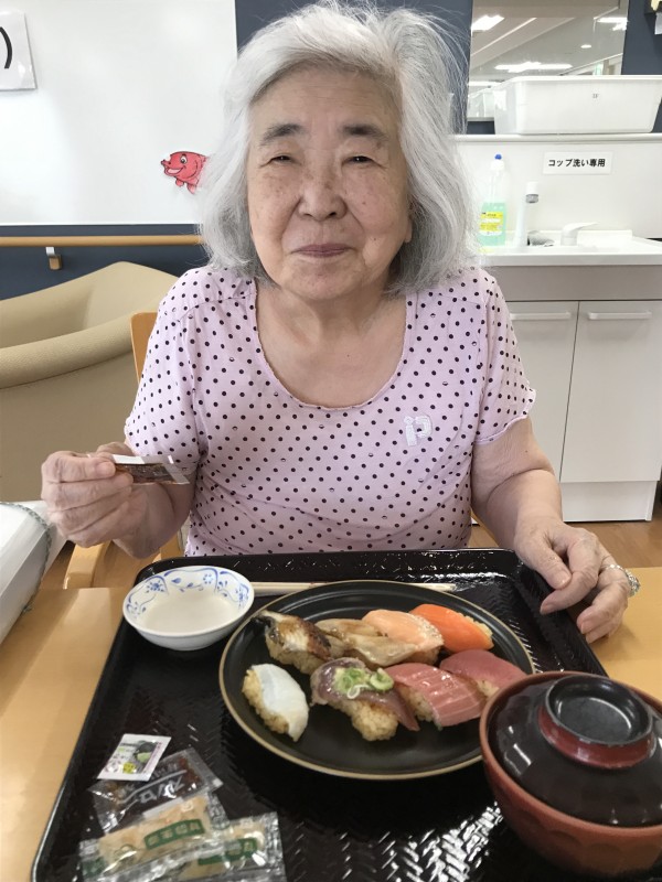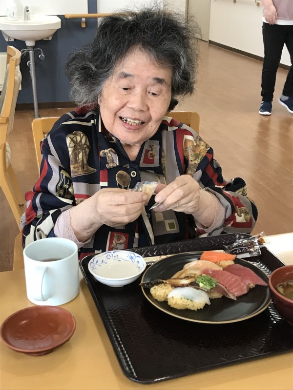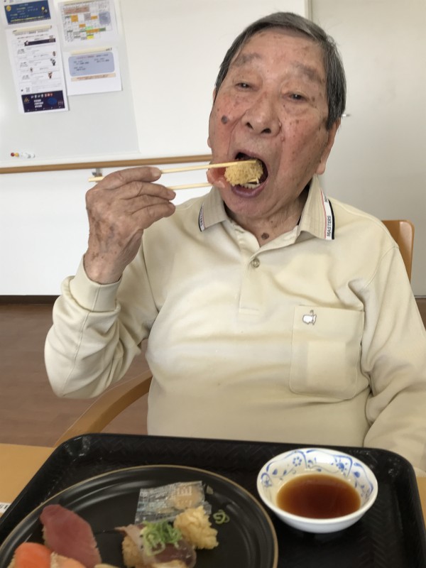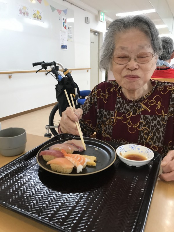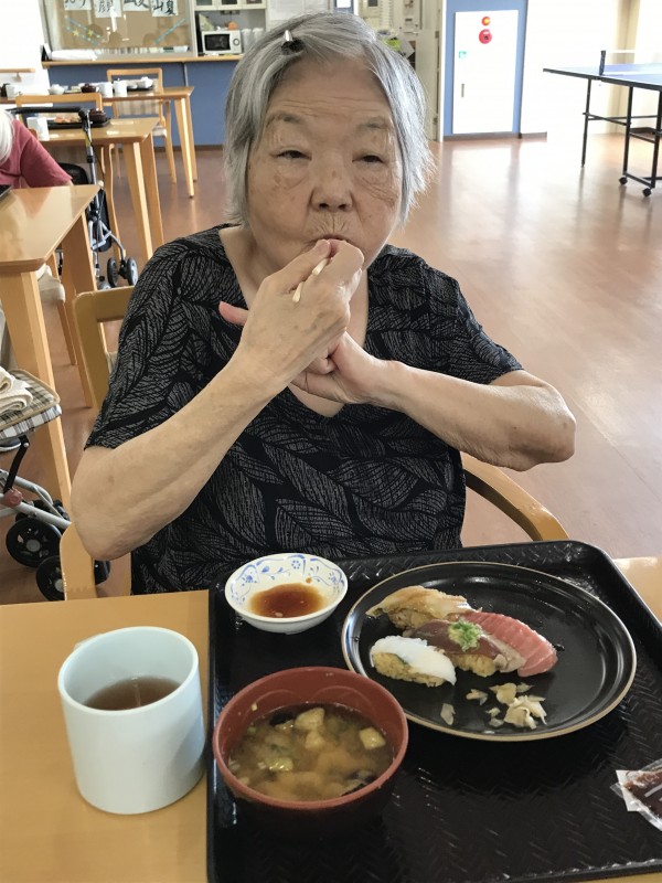 ご希望者にお寿司を提供しました。皆さま、とんでもなく『いい笑顔』です。