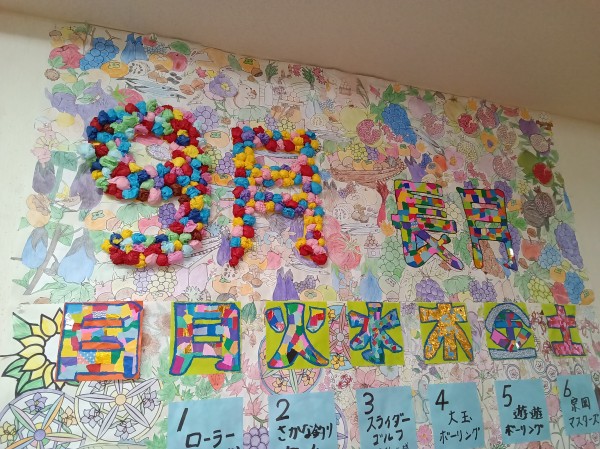 ご利用者様みんなで、塗り絵をして、切って貼って、配置も考えたりと、凄いです!