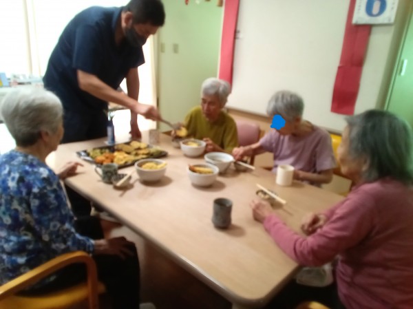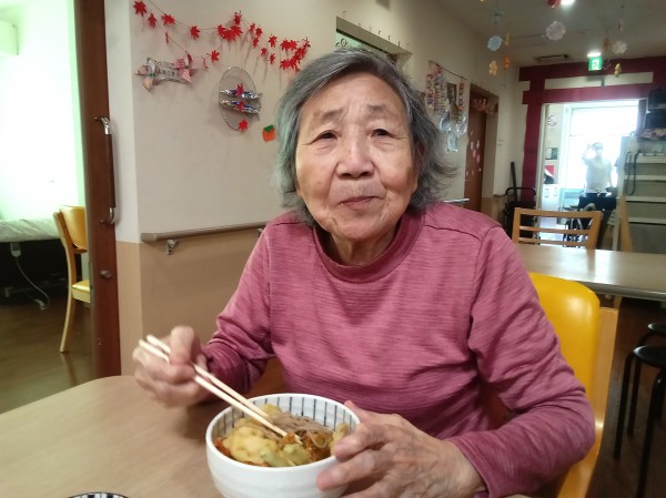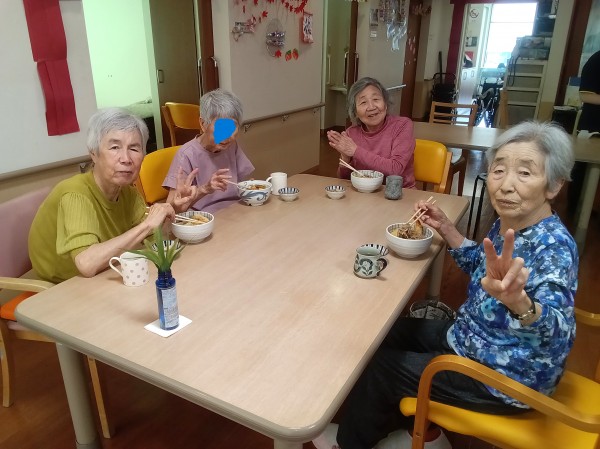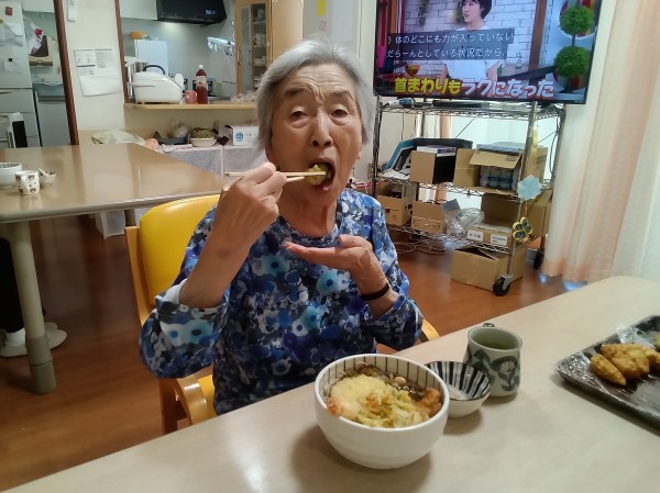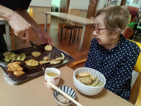 暖かいそばを用意して、皆様にはお好きな天ぷらを選んでもらい食べて頂きました(*^^*)