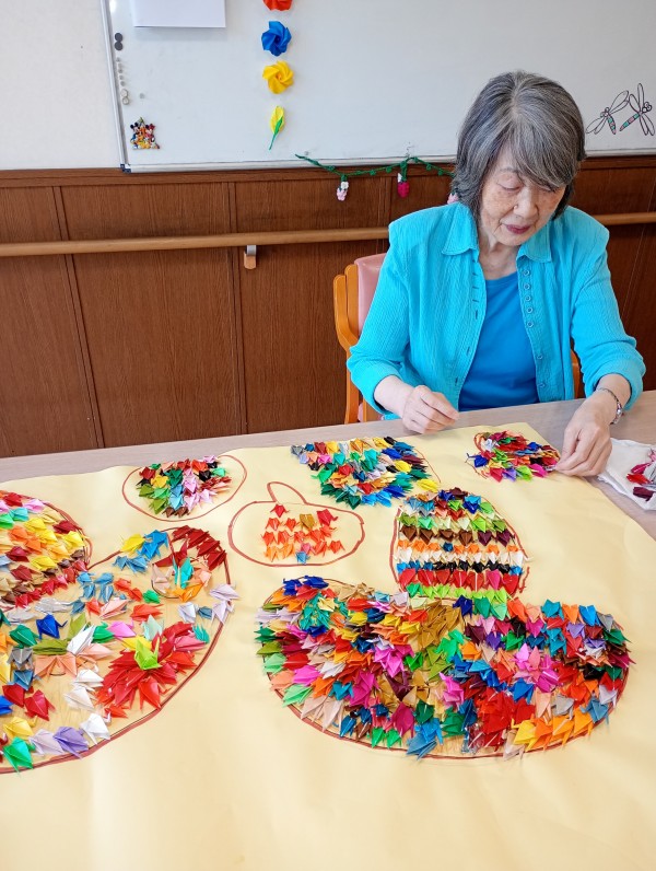 こちらのご利用者様、すこや家のブログではもうお馴染みの折り鶴名人!!