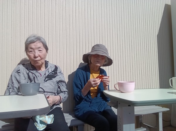 最後にと思い外でお別れおやつ会を開きました。