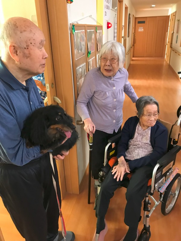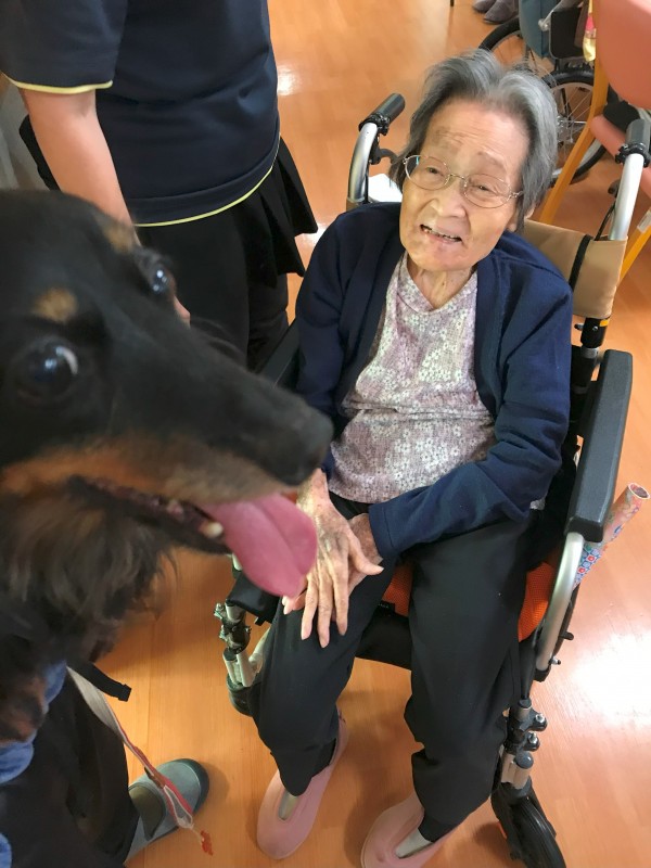 動物となかなか触れ合う事のない日常で、今日は可愛い来訪者が来られ皆さんとても喜んでおられました。