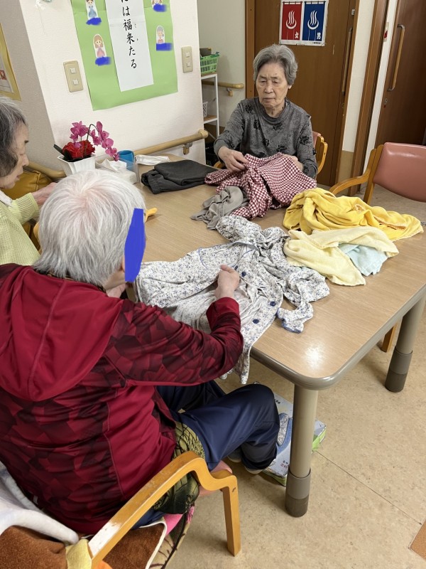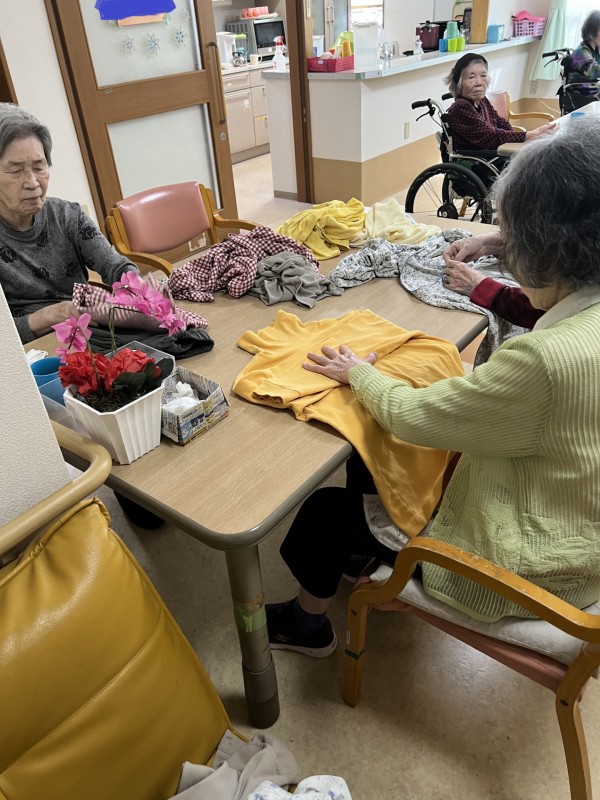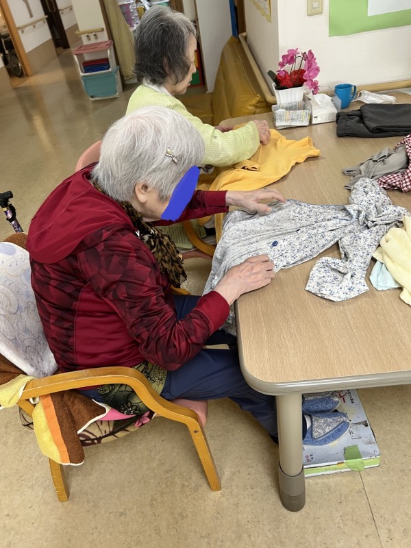 今回は2階の皆さんに洗濯物たたみのお手伝いをしていただきましたので、そのご様子をご覧ください。
