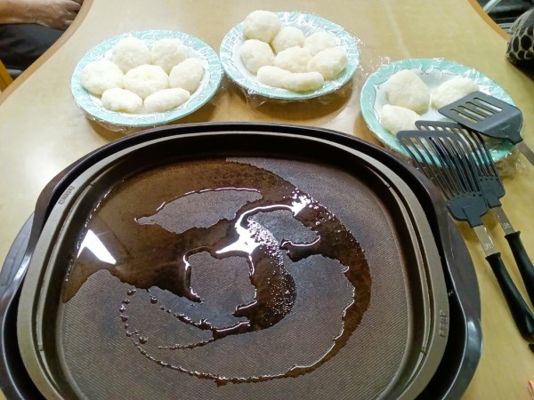 今日のおやつは、みんなで「いももち」を作ってみました~\(^o^)/