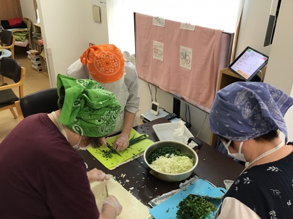 餃子にいれる生姜もおろして下さり、利用者様全員で手分けして作って下さるので、とっても助かります(*^^*)