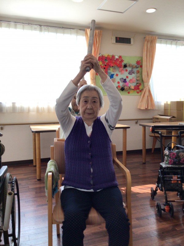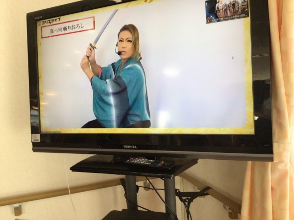 いつもはリズム体操や口腔ヨガ等、やり慣れた体操でしたが、今回は【殺陣(たて)体操】を行いました。