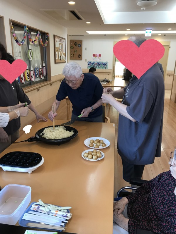 そこで8月のおやつレクでは焼きそばとたこ焼きを作ってみました(^O^)/