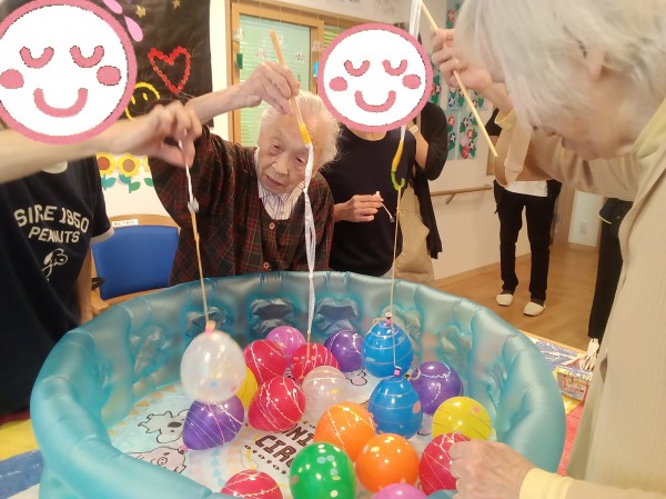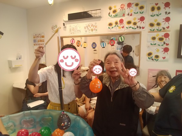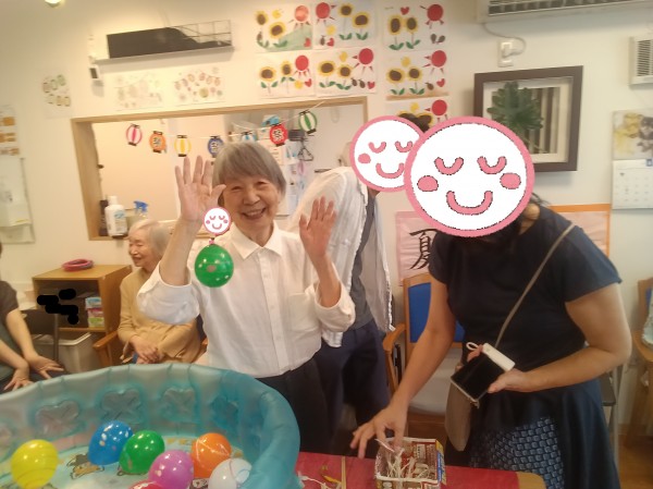 遅ればせながら今年99歳のI様もヨーヨつりに参加!