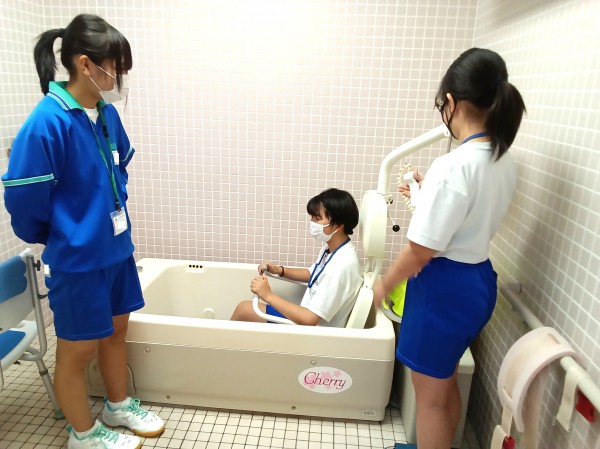 車椅子のご入居者様が 座ったまま入浴できる機械を実際に体験してみました