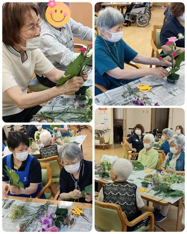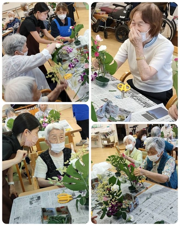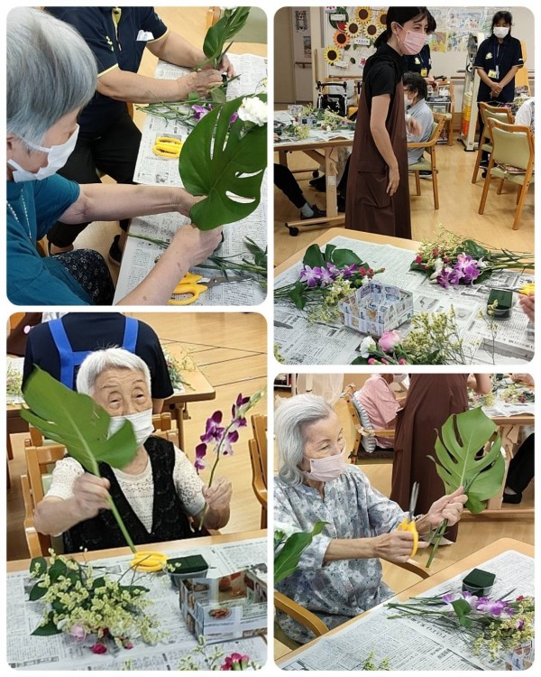 毎月のフラワーアレンジメントは、デイサービスセンター遊にお伺いします。