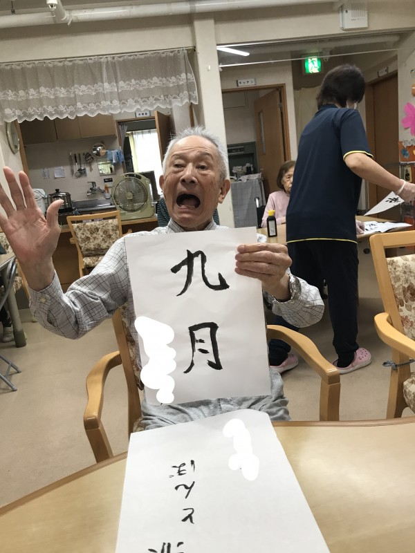 数あるレクリエーションの中でも、皆様が大得意のお習字です♪