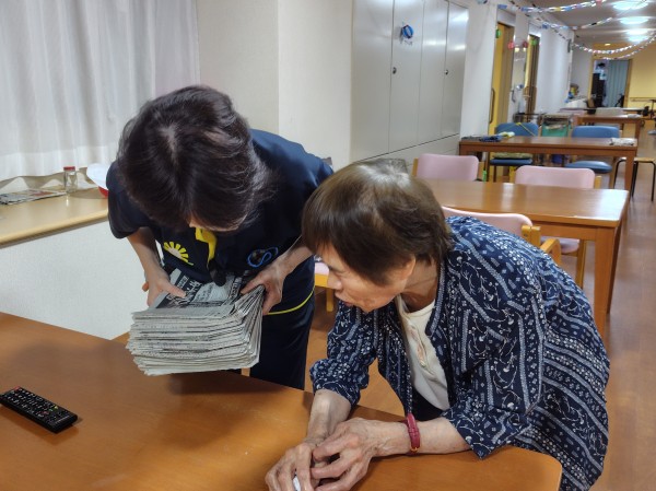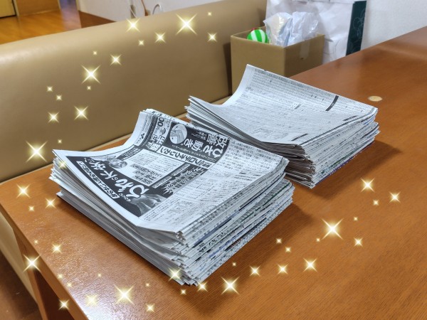 いつも、いろんなお手伝いをしてくださるお母様。本日は、新聞畳みをしてくださいました。