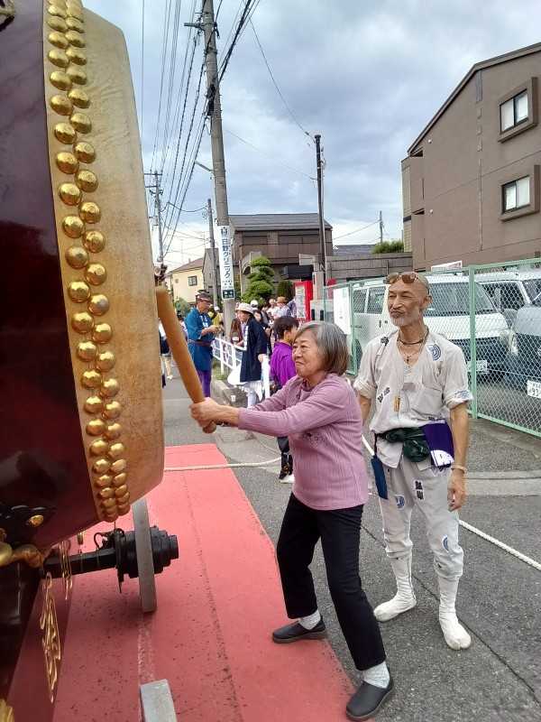 地域の方のご厚意で太鼓も叩かせて頂きました。