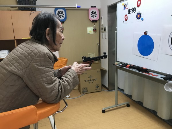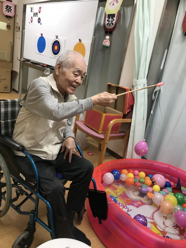 食事のあと は射的、ヨーヨー釣り、輪投げ会場を順番に回ってもらいお祭り気分を味わって