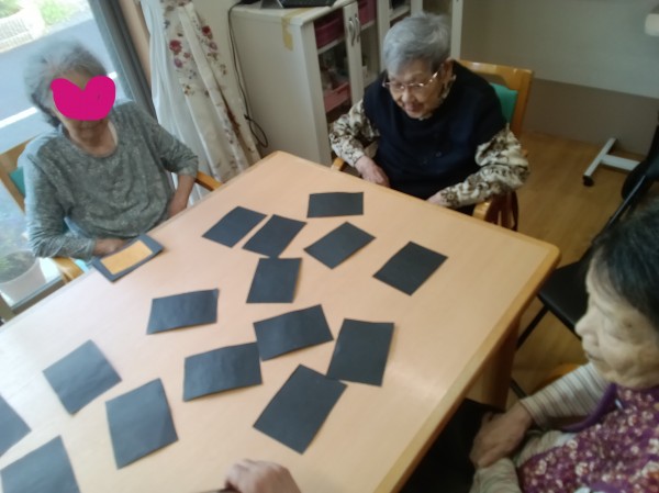 トランプだと少々難しいので職員が色別のカードを作ってくれました。
