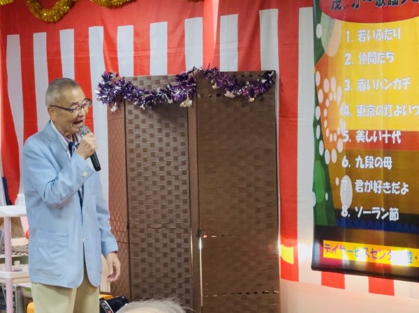 今回は・若い二人 ・仲間たち ・赤いハンカチ ・東京の灯よいつまでも ・美しい十代 ・九段の母 ・君が好きだよ ・ソーラン節 の8曲を披露して下さいました。