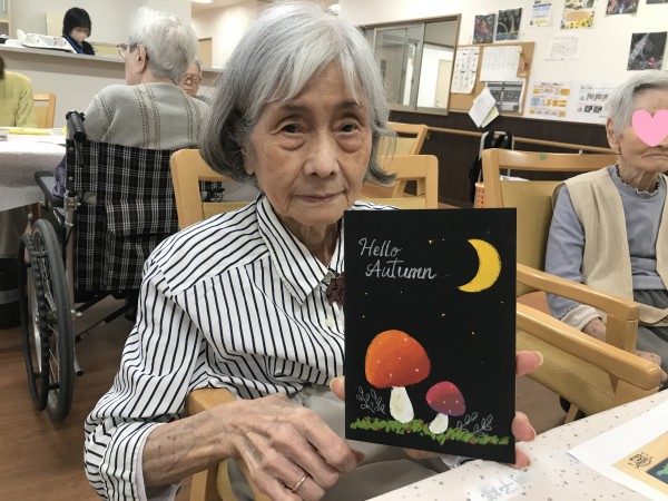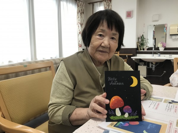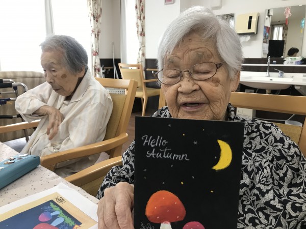 今回は秋らしく(まだ暑いですが...)きのこ、お月さまを描いてもらっています。