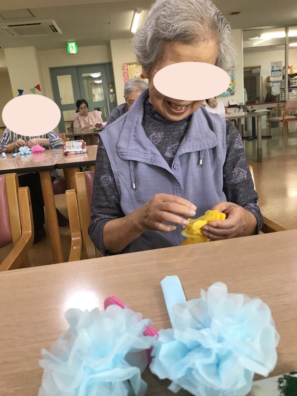 壁面飾り作りを手伝ってもらっています