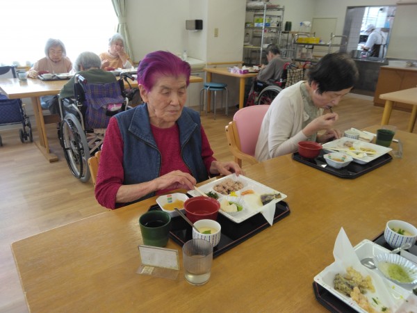 お赤飯と天ぷらを祝い箸で召し上がっていただきました!
