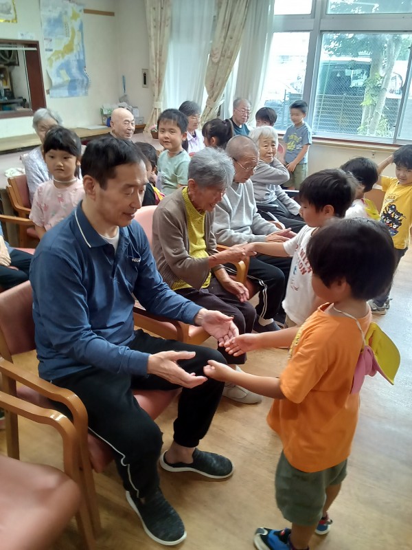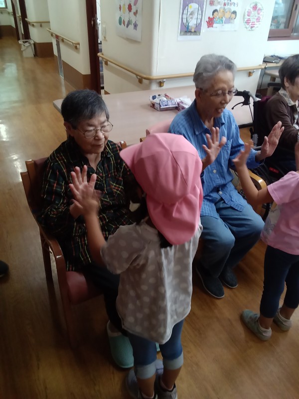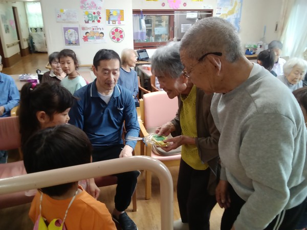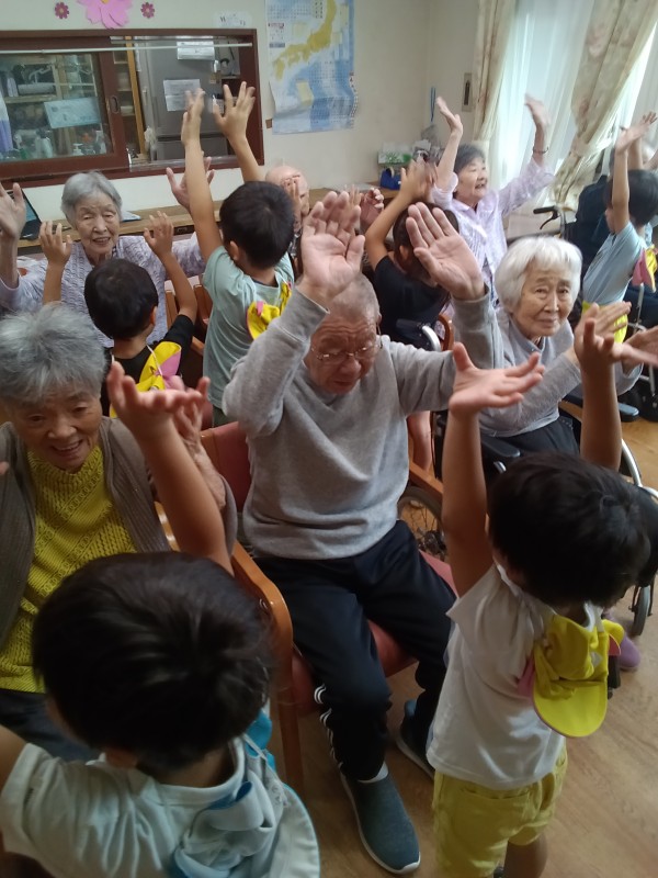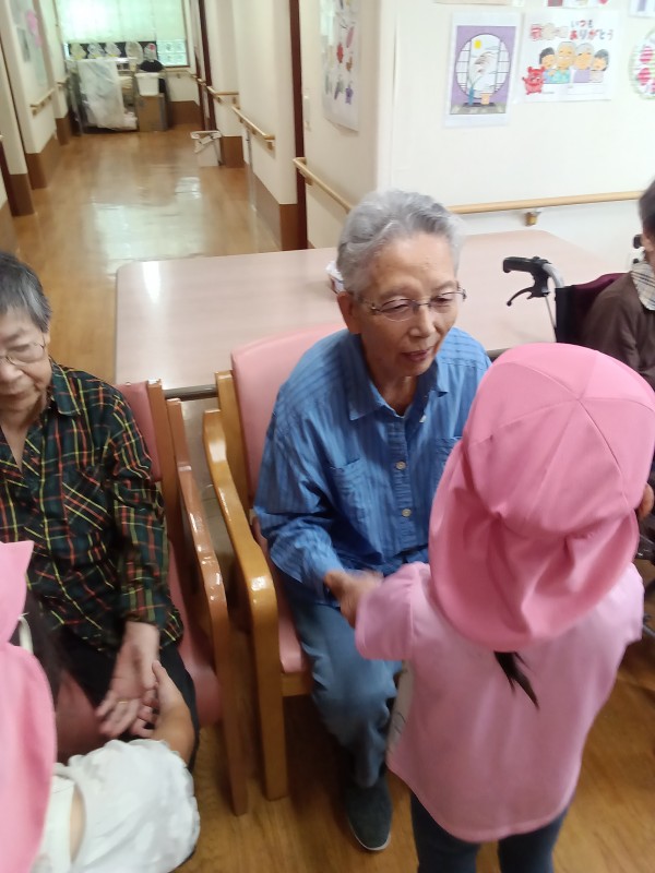 ご利用者様、園児たちと一緒に手遊び歌を楽しまれました♪