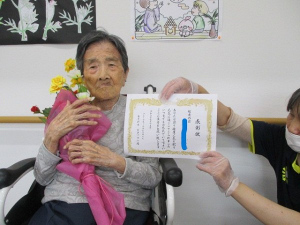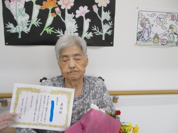 今日は2階・敬老会を行い感謝状をお祝い致しました。そのご様子をお知らせいたします!!