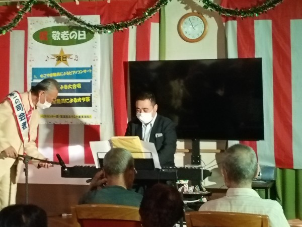 プログラムとしましては、①すこや家の職員によるピアノ演奏、②デイサービスとすこや家の職員による大合唱、③デイサービス、すこや家の職員によるオタ芸を行いました(^^)/。