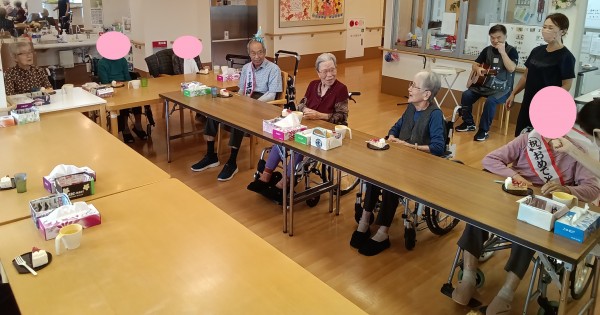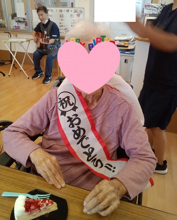 8月の方は4名、9月の方は2名が、お誕生日を迎えられ、職員のギターによる伴奏のもと、