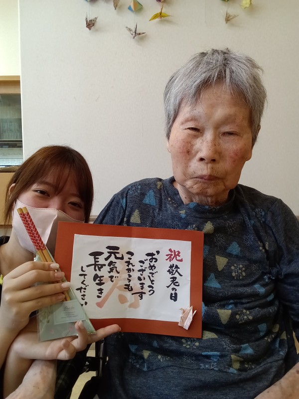 敬老のお祝いとして感謝状とお箸をプレゼントしました。