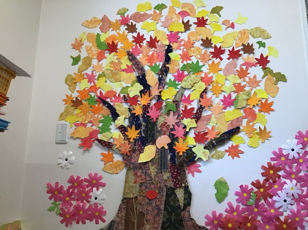 みなさんのご協力で素敵な秋の壁画が完成しました!