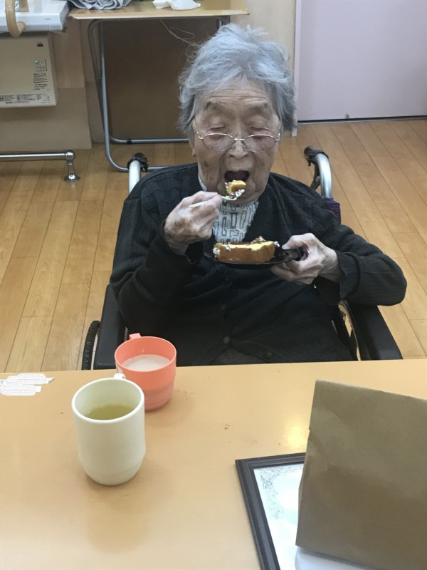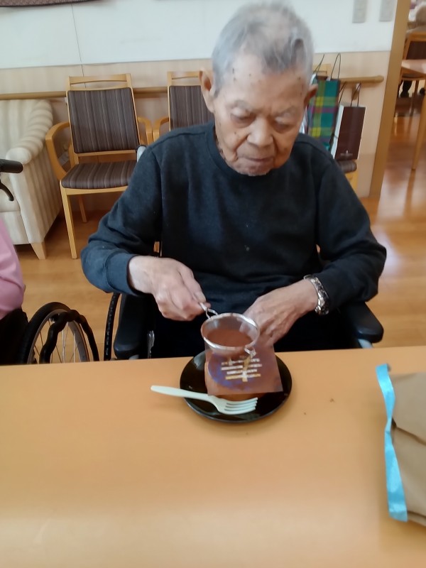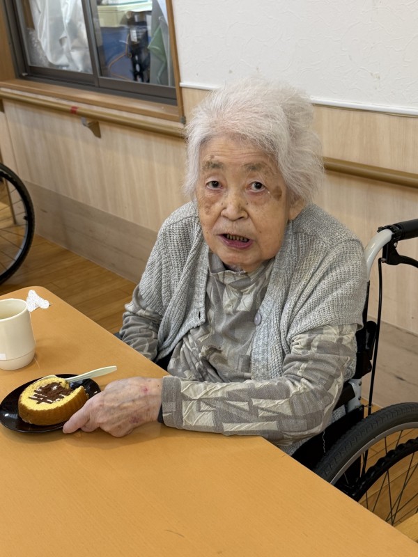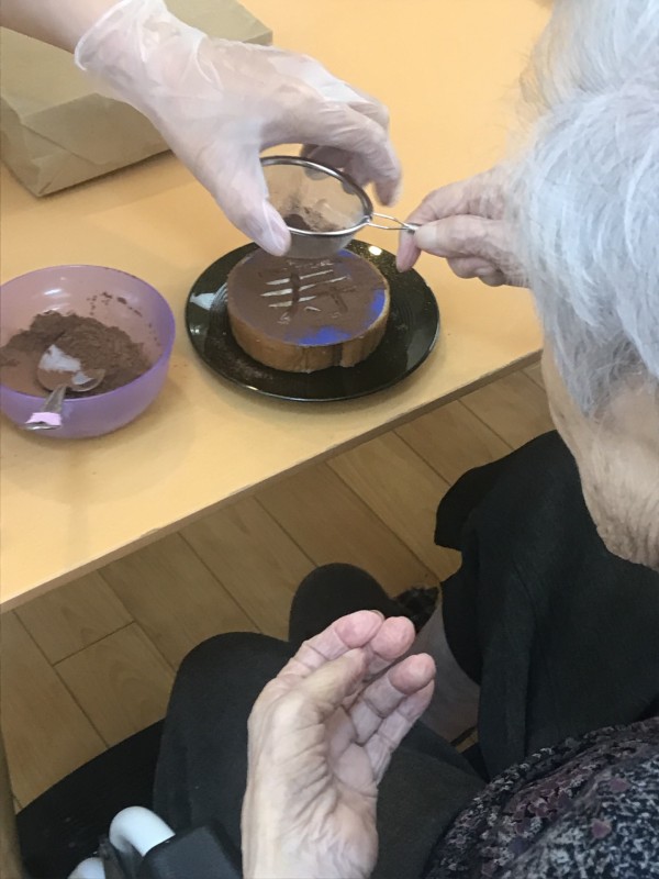ロールケーキに「寿」の文字を自分で入れるおやつレクを計画しました(^^♪