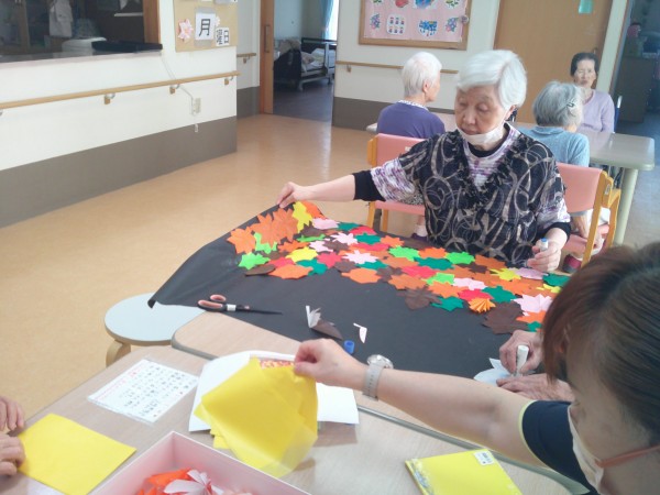 すっかり秋めいて来ましたね(*'▽')施設の壁画も秋仕様に♫