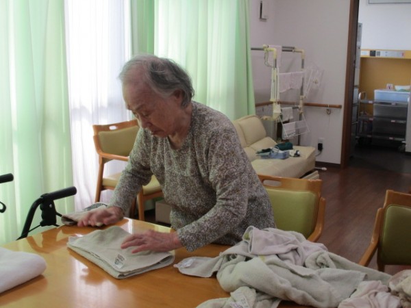 お手伝い・お洗濯物畳みと食器吹きのご様子です☆