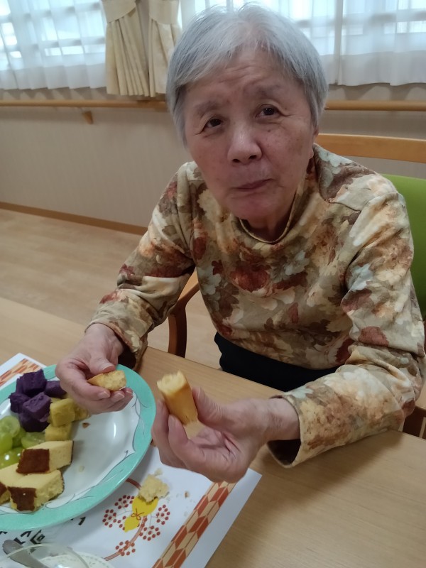 ゼリー、カステラ、芋羊羹など沢山のお菓子を提供すると、「今日は豪華ねぇ!」と大変喜んでくださいました。