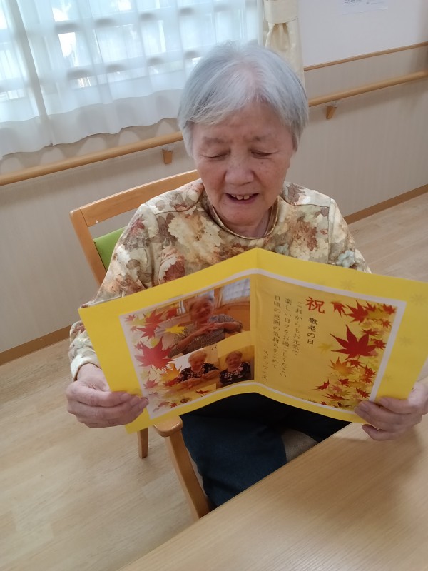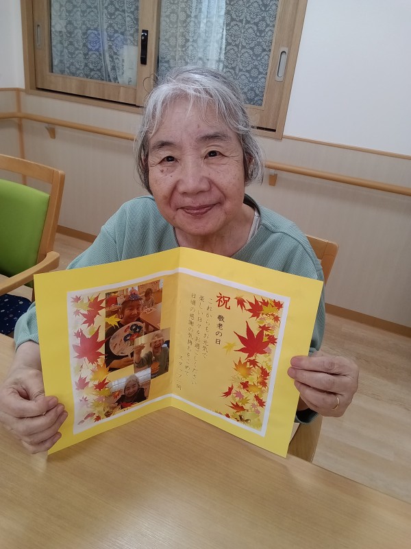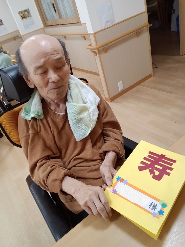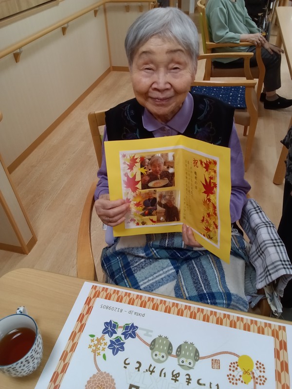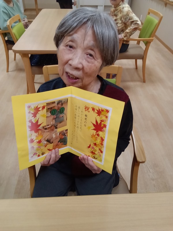 おやつの後はスタッフからお祝いのカードをプレゼント!