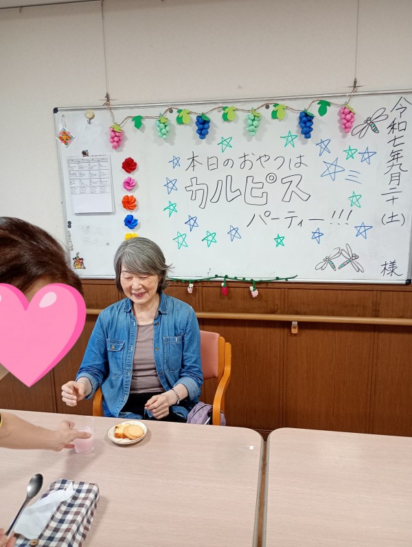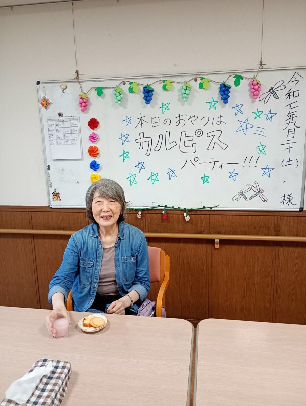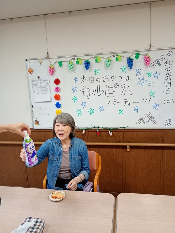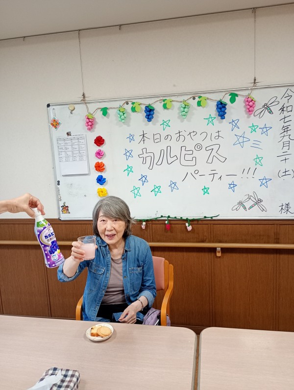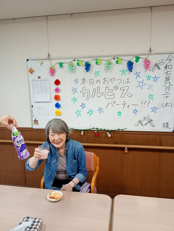 カルピスパーティーが開催されるとルンルンで職員と「かんぱーい♪♪」してくれました!!