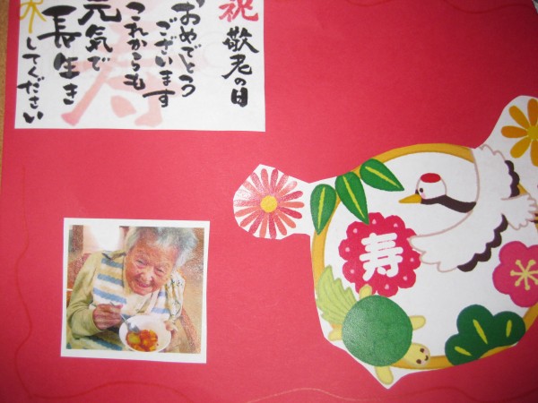 9月15日は敬老の日!(^^)!という事でスタッフよりご利用者様の写真付きメッセージのプレゼント。